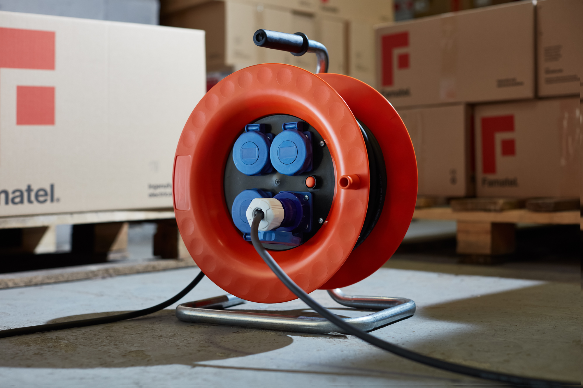 O rolo de extensão industrial IP67 produzido pela Famatel é ideal para aplicação em áreas industriais e na construção civil.